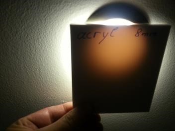 5mm Saetfix laat minder licht door dan een 8mm gegoten acrylplaat van een bekend merk.